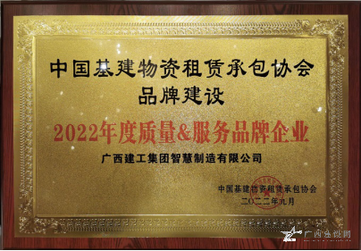廣西建工集團(tuán)智慧制造有限公司榮獲“2022年度質(zhì)量服務(wù)品牌企業(yè)”,公司董事長(zhǎng)、黨總支書記李日紅榮獲“2022 年全國(guó)基建物資租賃承包行業(yè)杰出創(chuàng)新人才”稱號(hào)。
